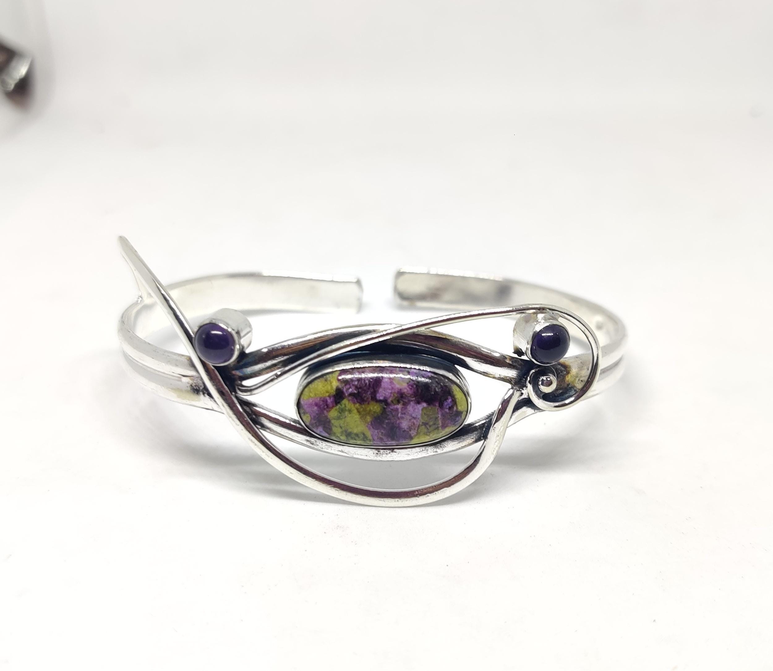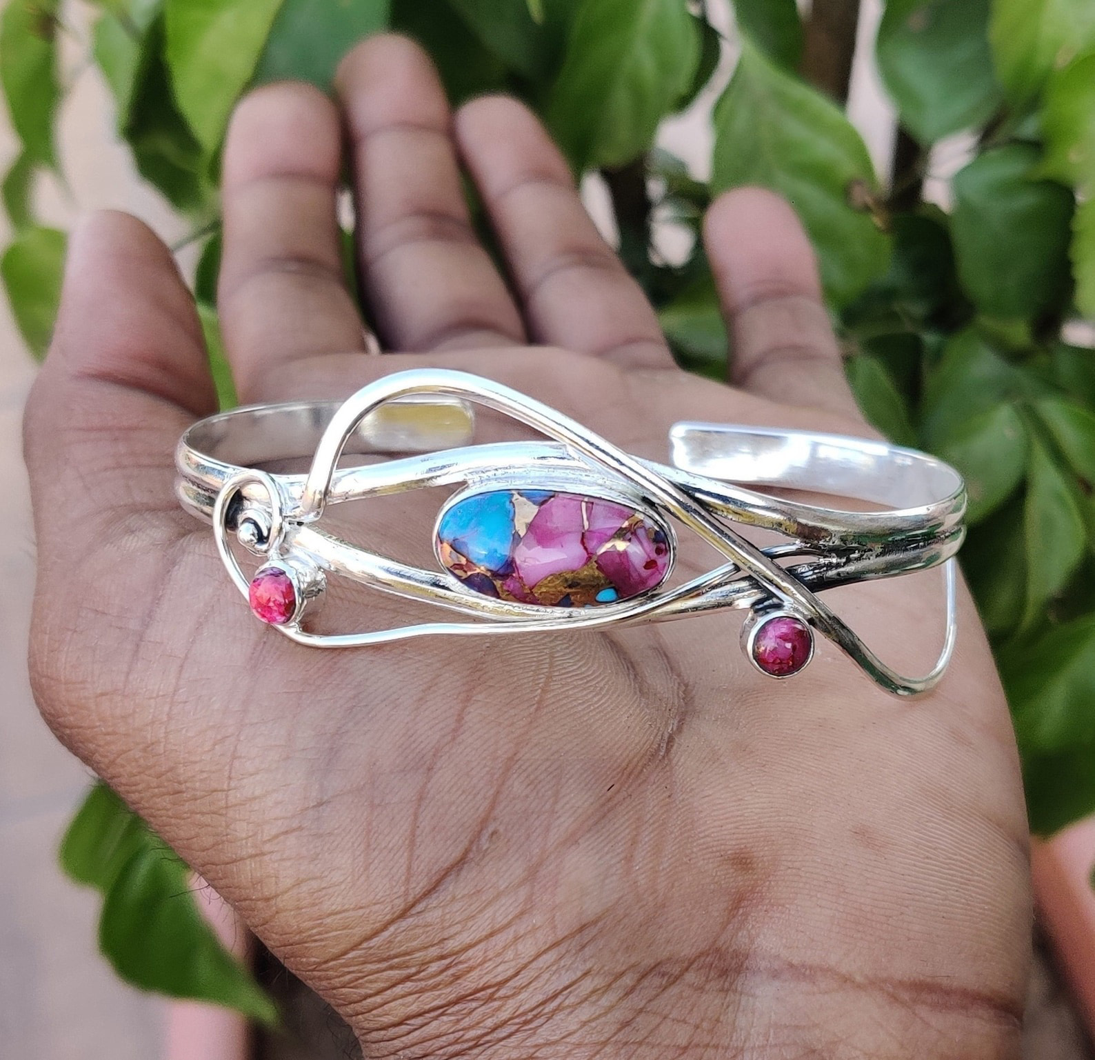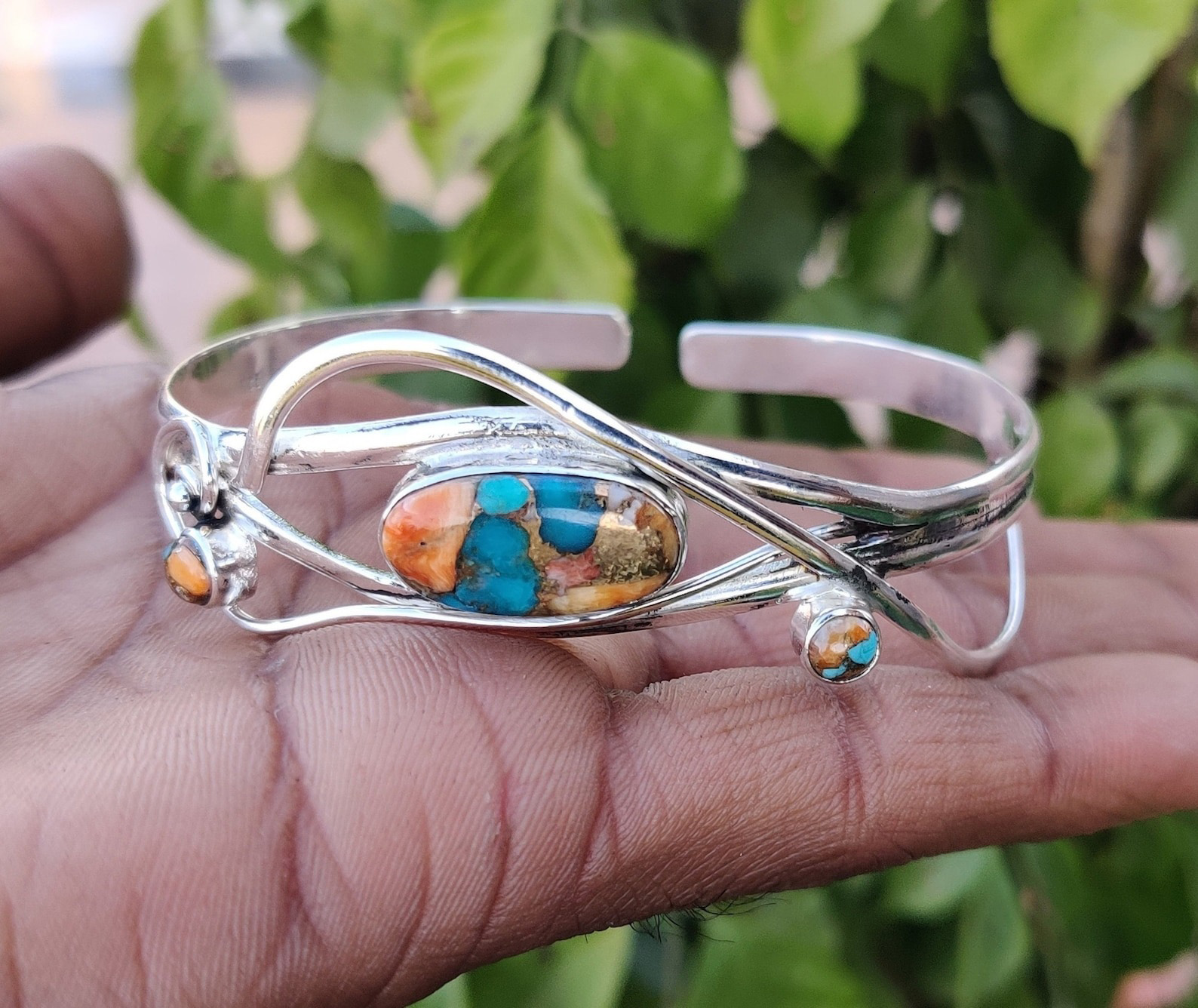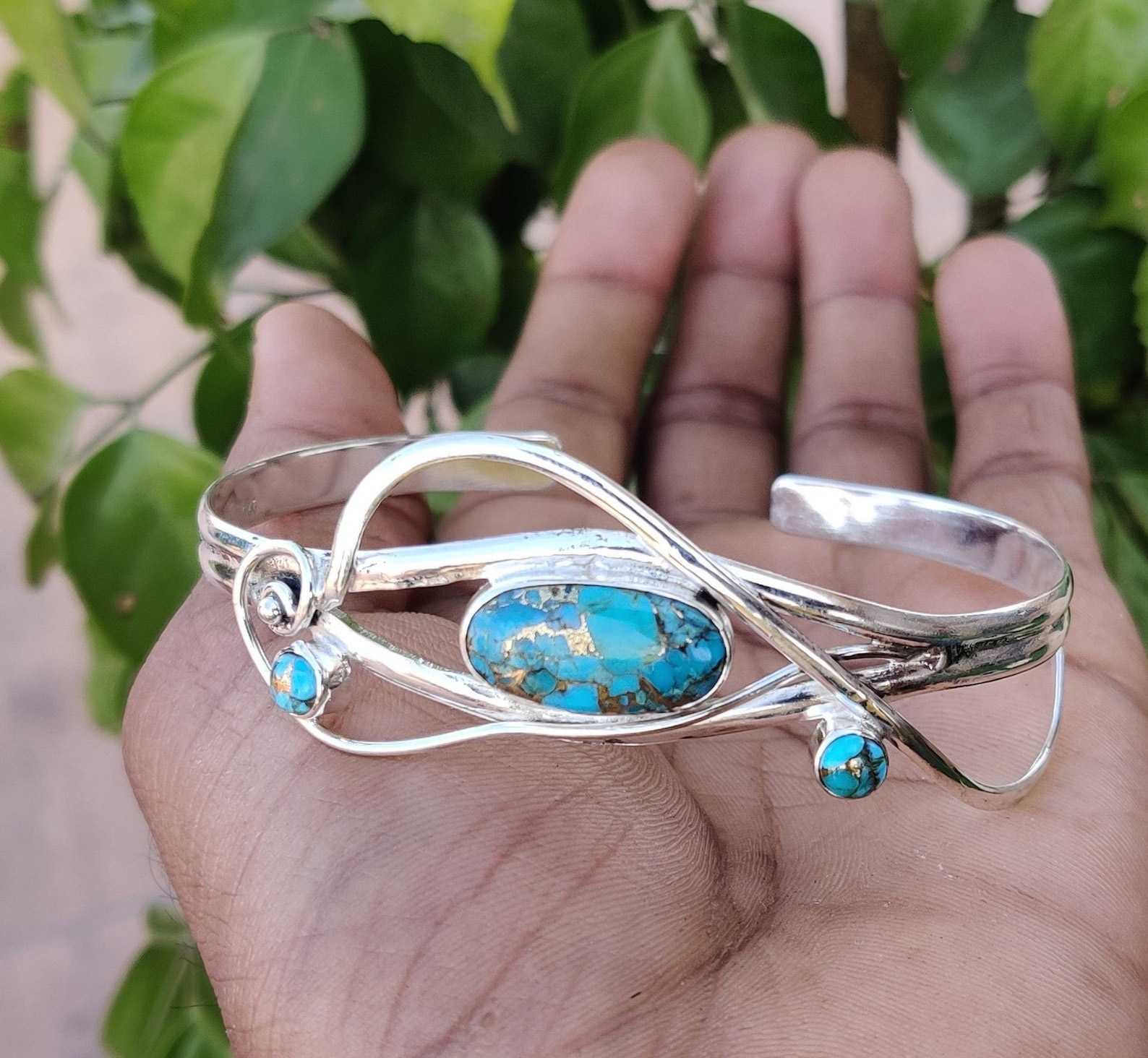 Green Copper Turquoise Bracelets, 925 Silver Bangle, Handmade Boho Bracelets, Women Bangle, Adjustable Bangle, Silver Bracelet Jewelry